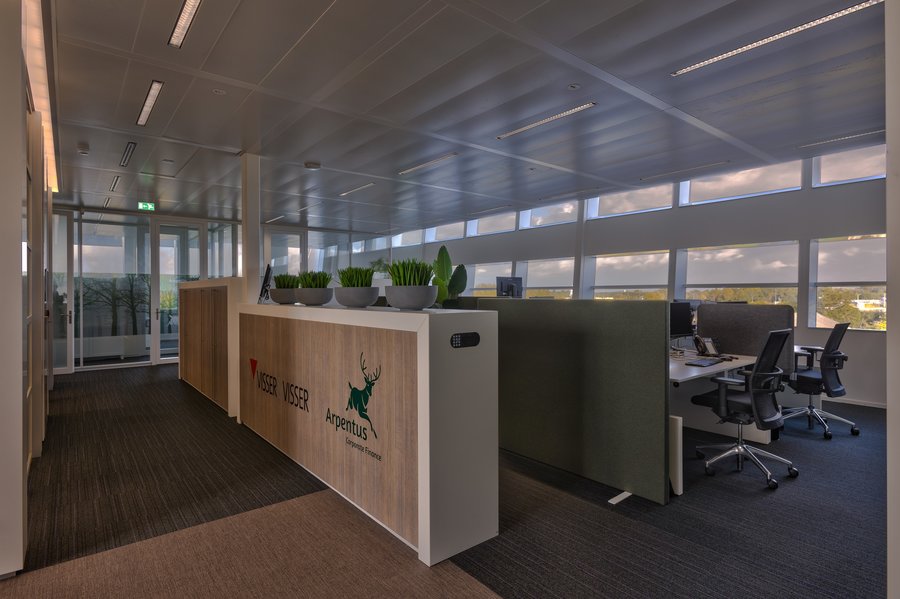 De nieuwe locatie van Visser & Visser Accountants Gorinchem hebben wij voorzien van een fijne werkomgeving. Door het plaatsen van geluidsabsorberende panelen, plantvoorzieningen als ruimtedeler, visuals en sfeervolle lounge/ overlegplekken.